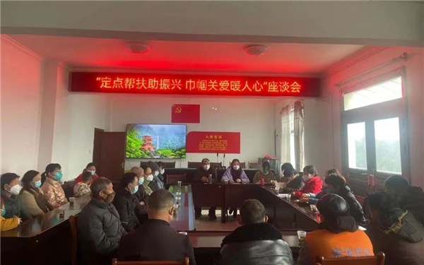在贵池区马衙街道杨安社区二楼会议室,市妇联一行与社区两委负责人、结对帮扶脱贫户代表欢聚一堂,开展面对面、心贴心的座谈交流。