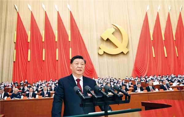 2022年10月16日,中国共产党第二十次全国代表大会在北京人民大会堂开幕。习近平代表第十九届中央委员会向大会作报告。新华社记者 鞠鹏/摄