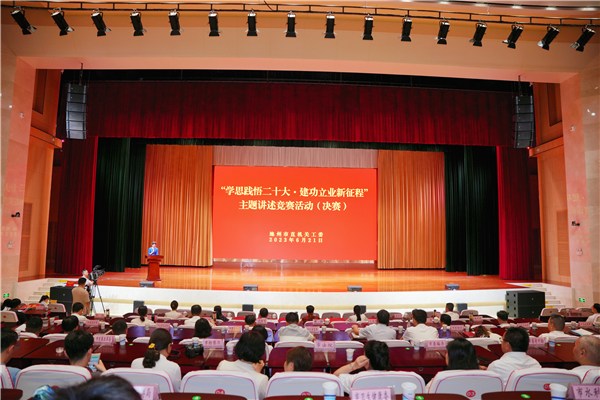 为进一步学习贯彻党的二十大精神,引导市直机关广大党员进一步统一思想、凝聚力量、拉高标杆、奋勇争先,奋力谱写池州现代化建设新篇章。6月21日上午,池州市直机关工委成功举办“学思践悟二十大·建功立业新征程”主题讲述竞赛活动(决赛)。市委常委、市委组织部部长廖强出席活动。市委教育和体育工委、市国资委党委主要负责同志以及各县区工委负责同志、工委直属基层党组织负责人和党务干部共计300多人参加。