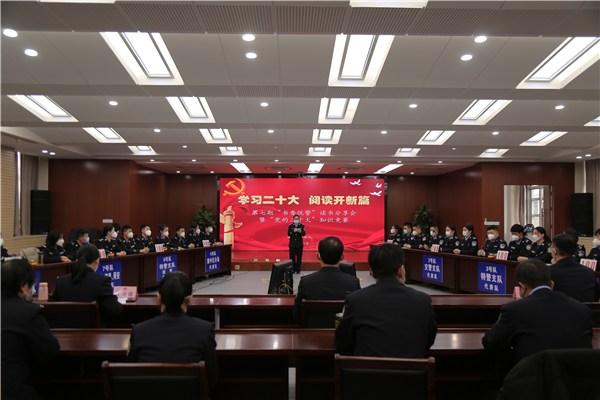 二、坚持“一人一分享”,在引领价值追求上求实效。“书香悦警”读书分享会安排在公安书屋静谧的环境里,分享者结合自身工作及生活实际,放入图片、音乐背景,分享对党的理论思想、书中人物和故事的心得体会。同时增添主题竞赛、互动竞答等环节,让大家在互动中获取知识,在交流中加深理解、提高思想认识,从而做实党员教育成效。活动开展以来,分享了党的二十大报告、《时代楷模潘东升》《钢铁是怎样炼成的》《青春之歌》《党员的样子》《苦难辉煌》《遇见未知的自己》等相关主题书籍,赢得了大家的一致好评,此外,每周组织开展党委理论学习中心组学习,第一时间组织学习习近平总书记重要讲话、指示批示精神,不断加强个人自学党建基础知识和公安业务知识,努力提高思想觉悟和业务水平。