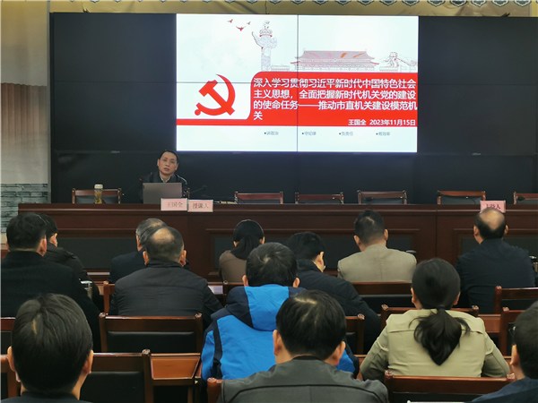 11月15日下午,在市房产处党员活动室,市直工委书记王国全围绕模范机关建设,为市直机关第四党建联系片50多名基层党支部书记讲了一堂专题党课。