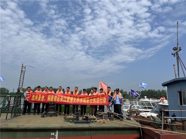优化模式,以协同配合促高效履职。切实扛牢政治责任,与公安、市场监管等部门各司其职、协同配合,充分发挥基层党组织战斗堡垒作用。扎实开展打击非法捕捞、秋季区域会战等专项行动,高频巡查电鱼行为高发频发水域,先后会同安庆、铜陵、江西湖口等3市5县开展跨区域跨部门联合执法,常态化开展池铜、皖赣等交界水域巡查工作。