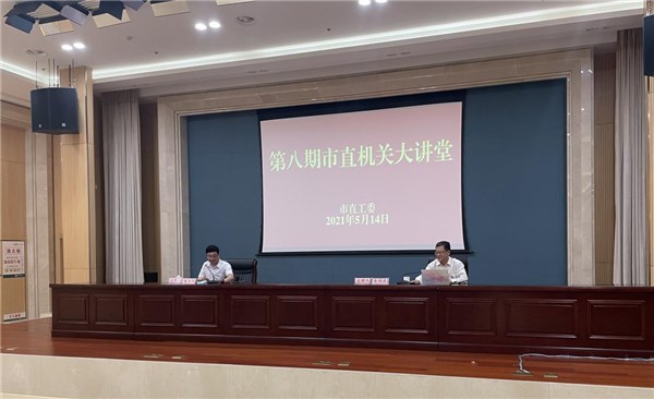5月14日,第8期市直机关大讲堂在市委党校会议中心开讲。市直工委副书记檀向阳主持会议,工委直属党组织负责人、工委机关全体党员参加会议。