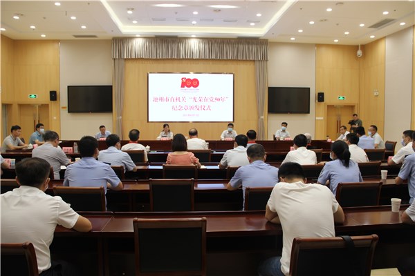 6月17日,市直工委举行“光荣在党50年”纪念章颁发暨新党员代表集体入党宣誓活动。市直机关5名“光荣在党50年”获颁者代表、30名新党员代表及部分基层党组织书记参加会议。