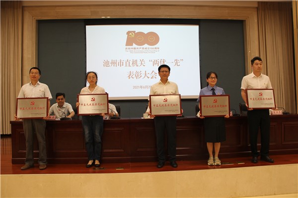 会议表彰了市直机关40 名优秀共产党员、20名优秀党务工作者、40个先进基层党组织。会议号召全市各级基层党组织和广大党员见贤思齐、争当先锋,恪尽职守、真抓实干,为新阶段现代化“三优池州”建设做出新的更大贡献,以优异成绩向建党100周年献礼。