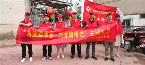 为大力弘扬伟大建党精神,引导广大党员干部落实“一改两为五做到”要求,严格执行“单位联系社区、党员下沉小区”,6月23日,市政府办公室机关党委组织党员干部赴联系社区城北社区百货站小区开展“为党旗添彩、为党旗增光”主题党日暨文明创建进社区宣传活动。