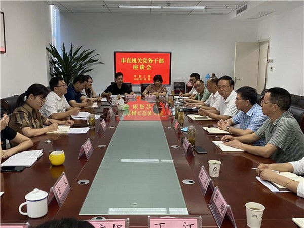 7月1日上午,市直工委召开市直机关党务干部座谈会。新老党务干部代表、片长单位党组织负责人、工委机关全体干部参加会议。
