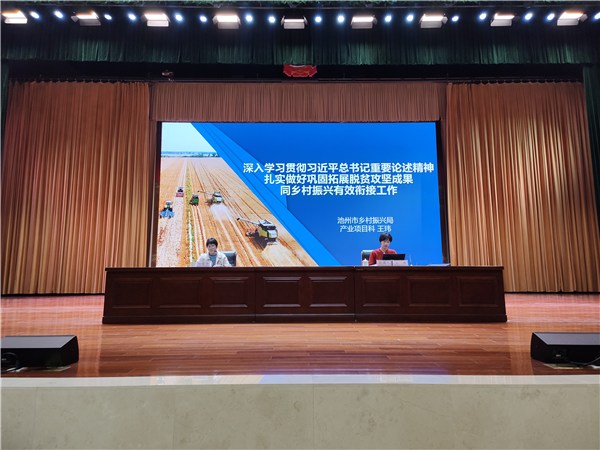 池州市乡村振兴局产业项目科王玮围绕乡村振兴作题为《深入学习贯彻习近平总书记重要论述精神,扎实做好巩固拓展脱贫攻坚成果同乡村振兴有效衔接工作》的授课