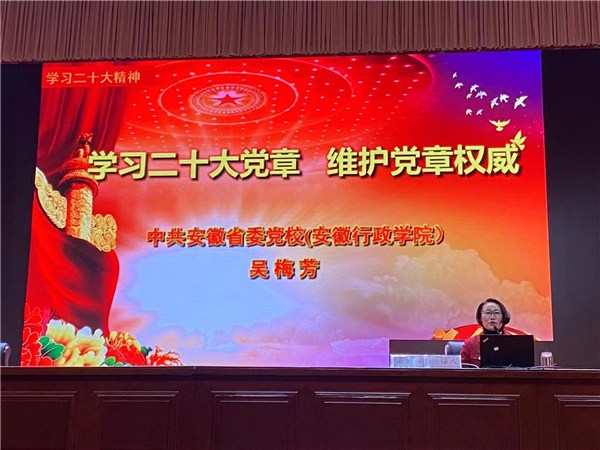 安徽省委党校教授吴梅芳作党的二十大新修订的党章解读专题辅导,引导党务干部更好地学习领悟会议精神。
