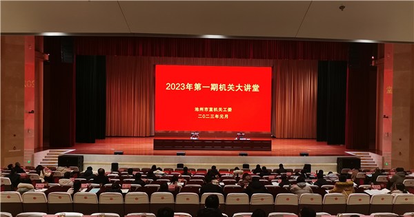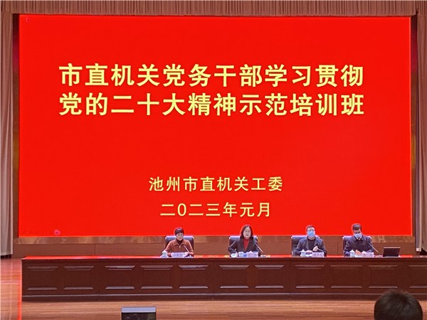 为全面深入学习宣传贯彻党的二十大精神,进一步提升市直机关党务干部理论素养和党务工作能力,1月29日至31日,池州市举办市直机关党务干部学习党的二十大精神示范培训班暨2023年第一期机关大讲堂,各直属基层党组织负责人及部分基层党支部书记200余人参加。