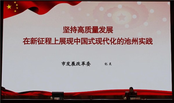 池州市发改委综合科忆炎作题为《坚持高质量发展在新征程上展现中国式现代化的池州实践》的授课