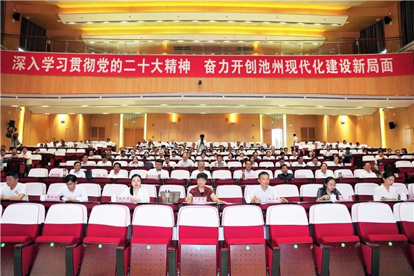 为进一步学习贯彻党的二十大精神,引导市直机关广大党员进一步统一思想、凝聚力量、拉高标杆、奋勇争先,奋力谱写池州现代化建设新篇章。6月21日上午,池州市直机关工委成功举办“学思践悟二十大·建功立业新征程”主题讲述竞赛活动(决赛)。市委常委、市委组织部部长廖强出席活动。市委教育和体育工委、市国资委党委主要负责同志以及各县区工委负责同志、工委直属基层党组织负责人和党务干部共计300多人参加。