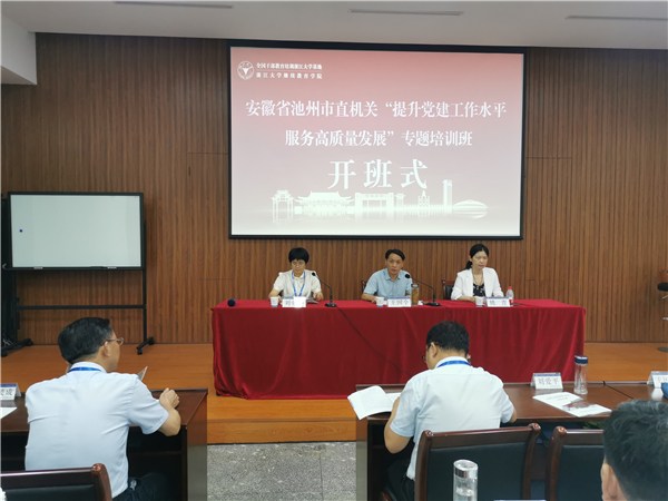 为学习贯彻党的二十大精神,进一步提升机关党务干部做好机关党建工作的能力水平,切实以高质量机关党建服务经济高质量发展,7月3日,池州市直机关“提升党建工作水平 服务高质量发展”专题培训班在浙江大学开班。市直机关70名党务干部参加培训,市直机关工委书记王国全出席开班式并作开班动员。