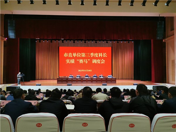 11月10日,市直单位第三季度科长实绩“赛马”调度会召开。会上通报了市直41家单位158名科长、五大类324个“赛马”指标得分排名情况。
