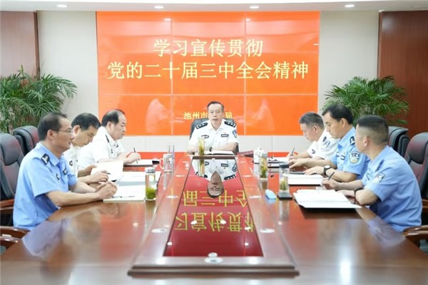 7月24日、8月26日,市公安局先后召开党委会议和党委理论学习中心组(扩大)学习会,认真传达学习党的二十届三中全会精神,深入开展学习交流研讨活动,研究部署市公安局学习宣传贯彻全会精神具体措施。