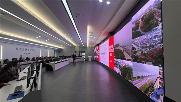 在参观市数字城市运行管理中心时,工作人员详细介绍了中心整体运行情况,并进行城市生命线、森林防火、秸秆禁烧及防汛抗旱一张图等场景演示。大家通过以大数据分析、智能预警等方式实现对城市运行精细化管理的直观感受,充分体会智慧城市的效能与魅力。