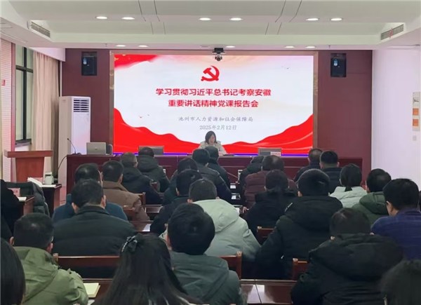 2月12日,市人社局主要负责同志为全局党员干部作党课报告,强调全市人社部门党员干部要自觉站位全局、找准职责定位,进一步统一思想、增进共识、凝聚力量,在推动池州经济社会发展全面绿色转型示范区建设上发挥更大作用。